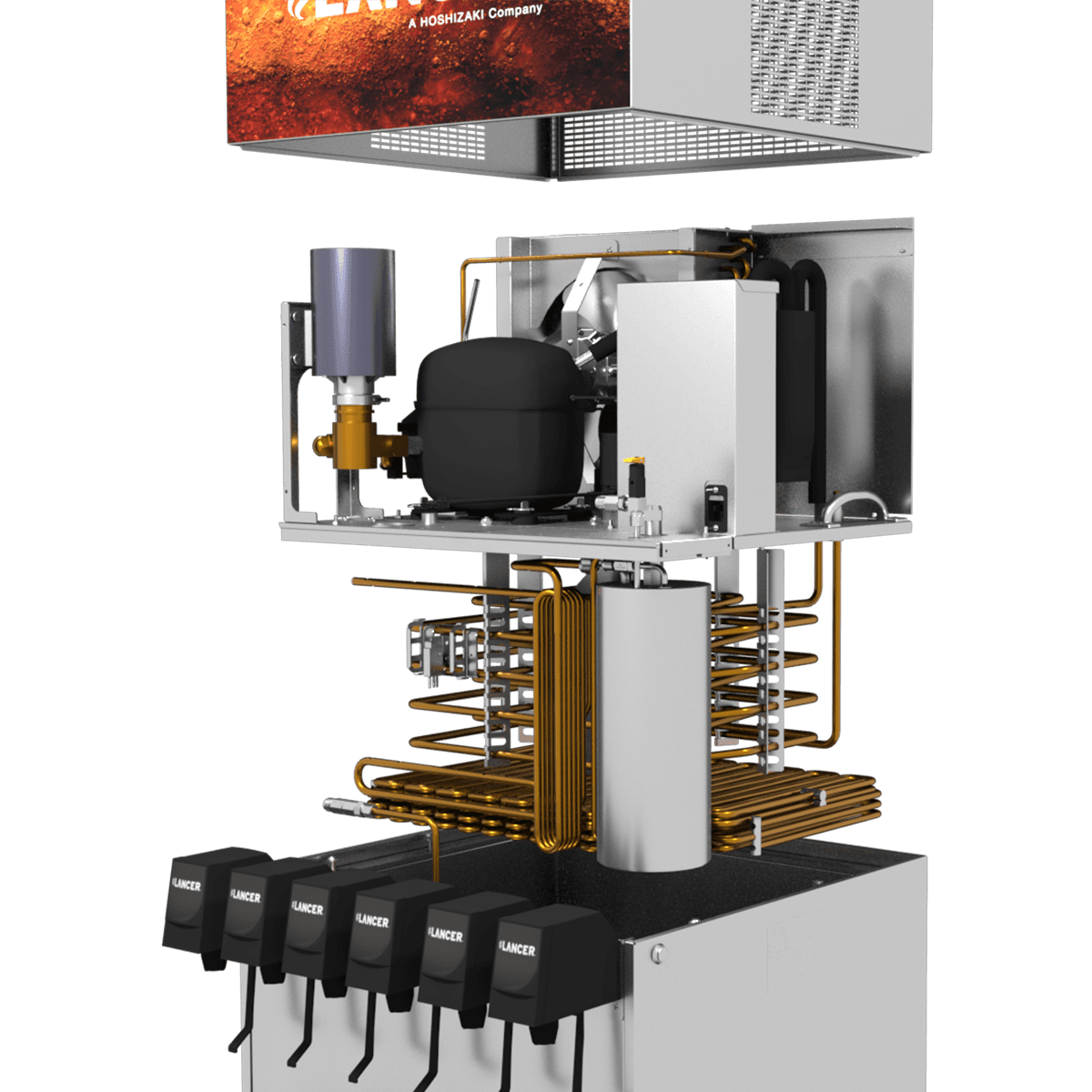 A removable refrigeration deck and added ventilation louvers make the CED 800 easy to service and maintain. With 6 or 8 post‑mix valve options and a flexible manifold configuration, the dispenser adapts seamlessly to a wide range of operational needs.