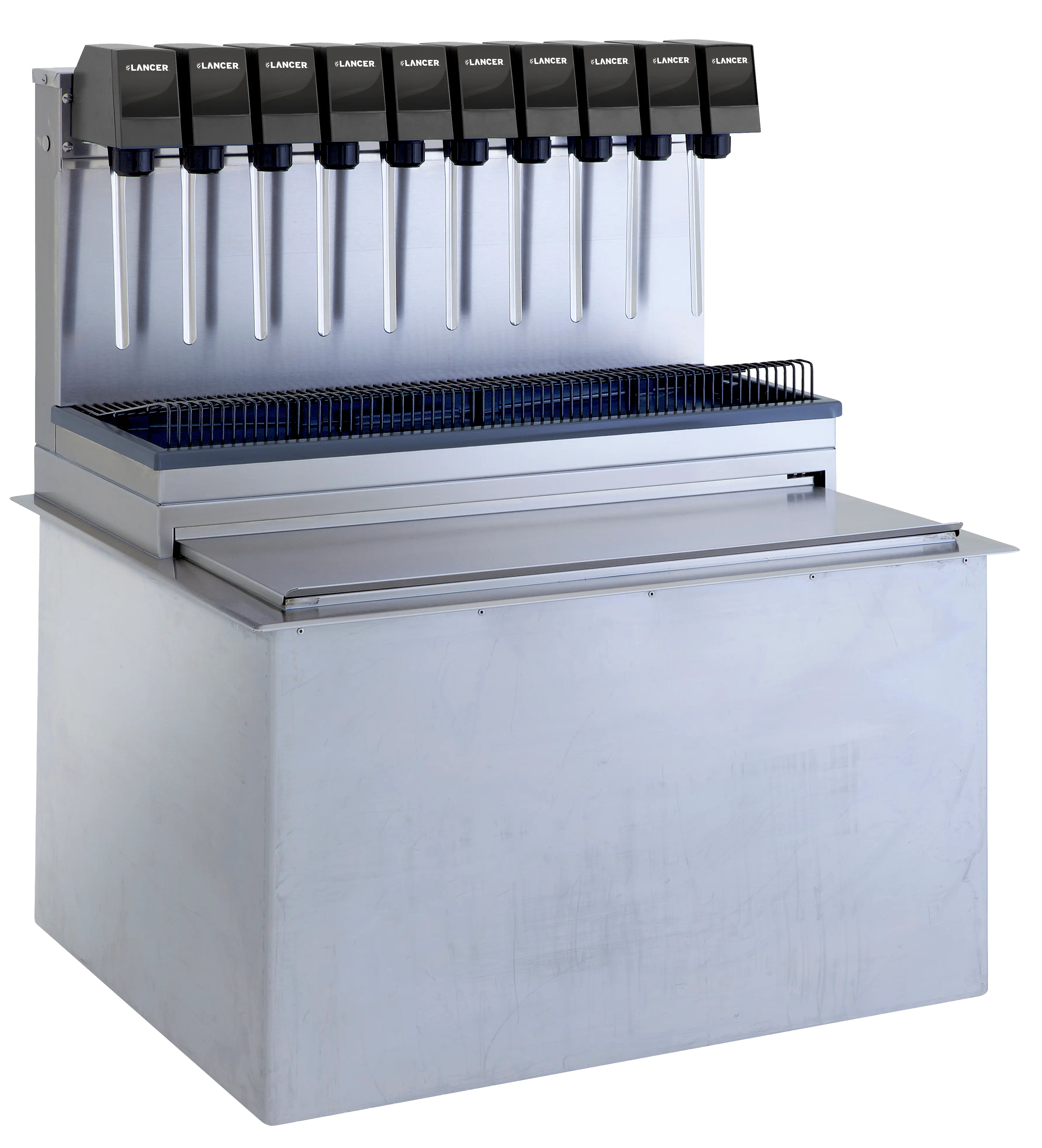 Lancer Worldwide’s Ice Cooled Drop-In features an ice bin design that maximizes accessibility and guarantee beverage quality. The cold plate maintains consistently cold beverage temperatures and the ice bin switch ensures the dispenser is disabled as long as the lid is open. This streamlined, service-friendly layout supports reliability, hygiene, and ease of maintenance.